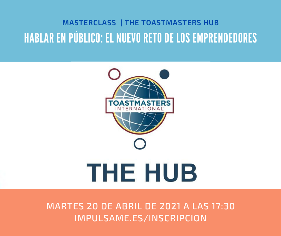 El martes 20 de abril de 2021 a las 17:30 tendrá lugar la Masterclass de Oratoria impartida por miembros de The Toastmasters Hub, la primera incubadora de clubes de oratoria dentro de Toastmasters Internacional.