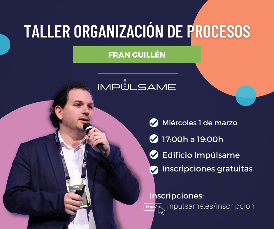 El miércoles 1 de marzo de 2023 de 17:00 a 19:00 tendrá lugar el Taller de Organización de Procesos en el Edificio Impúlsame.